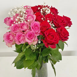 Choose 24 or more luxury long stem Red or Pink Roses with Babies Breath delivered anywhere in the continental US. This Offer Includes Free Shipping!