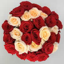 12 Cream Roses and 12 Red Roses, with a Tin Vase included.